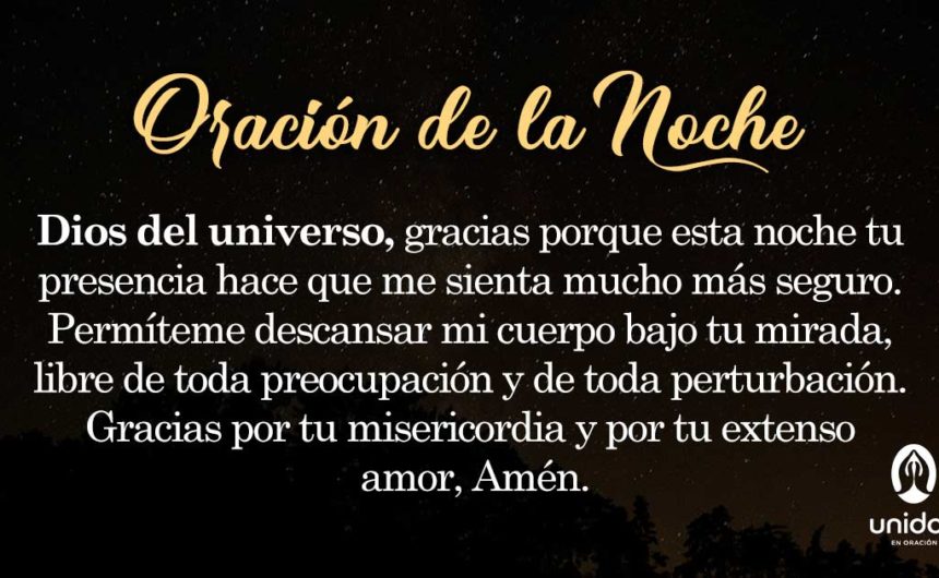 Precioso Dios de paz y de misericordia, en esta noche vengo ante tu presencia para darte gracias por el hermoso día que me concediste. Gracias porque me preservaste de los males del mundo y me diste la posibilidad de la salud y así realizar todas mis actividades personales.