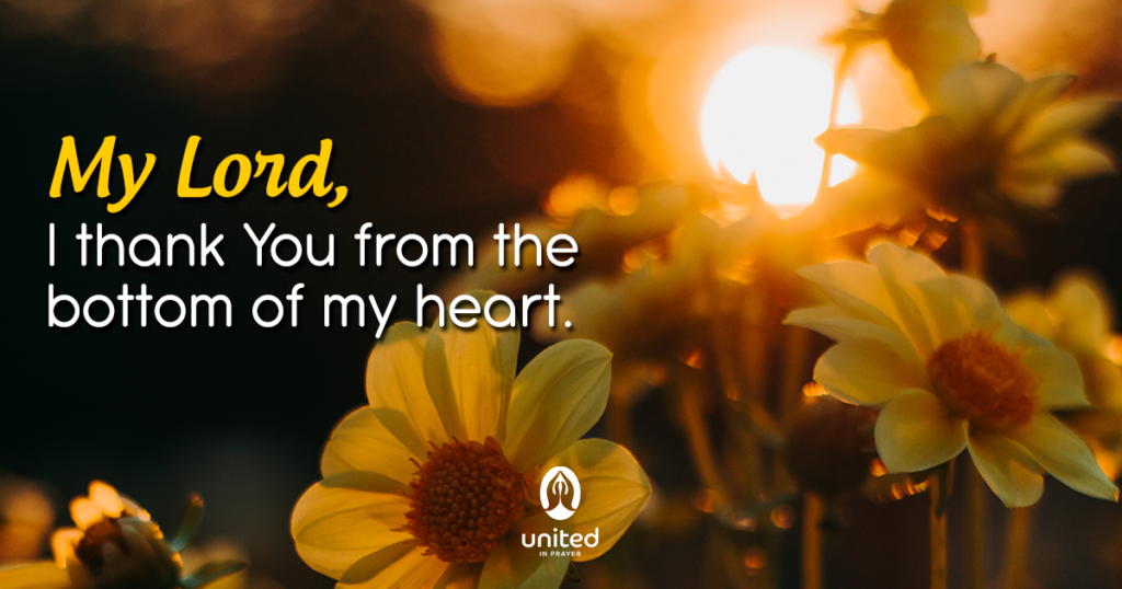 Precious and beloved Lord, today I want to come close to You, not to ask for my needs, which you already know about, but to thank you from the bottom of my heart for being You, my good and merciful God. To thank you for being so kind, for providing me with the gift of life, for every days’ blessings, and because you always give me new reasons to smile.