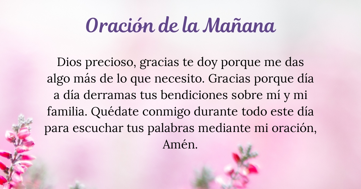 ¡La oración tiene poder! Es una bella mañana que el Señor nos regala y en la que nos da la oportunidad de seguir adelante y alcanzar nuestros anhelos. Que esta oración pueda ser el impulso que nos ayude a seguir creyendo en el gran poder de nuestro Señor. ¡El Señor es fiel en todo momento! … Leer más
