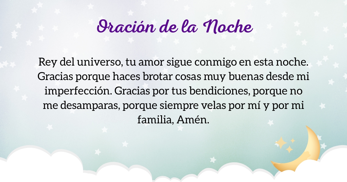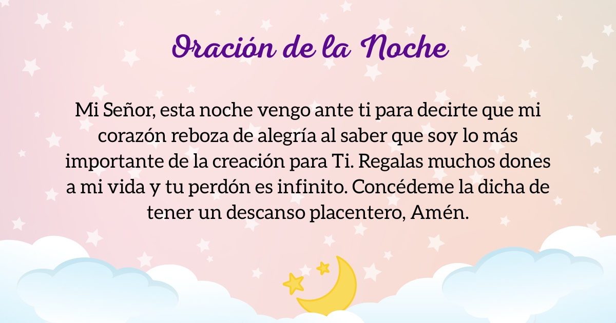 La brillantez de la luna anuncia la llegada de una noche llena de mucha calma y quietud. El amor de Dios está contigo en todo momento, solo debes buscarlo y sabrás que tiene planeadas grandes cosas para ti. Da gracias a Dios desde que el día empieza hasta que termina. Esta noche, eleva una plegaria … Leer más