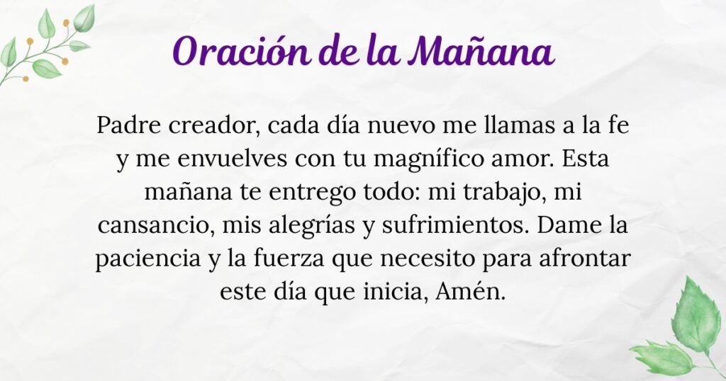 Esta mañana, Dios quiere que te acerques un poco más a Él. Entrégale tu corazón y eleva esta oración pidiendo paz y armonía en tu hogar. Que todo vaya por el camino correcto esta mañana y que el amor de Dios se manifieste en todas las actividades que te toque realizar.