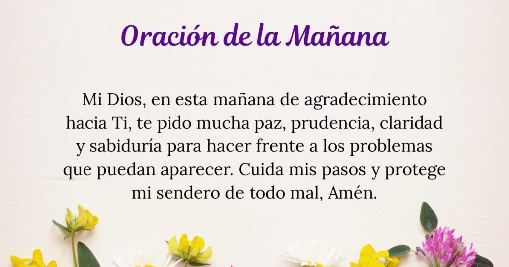 Señor Celestial, esta mañana estará llena de muchas adversidades que afrontar, pero si no me suelto de tu mano, todo lo podré lograr. Aleja al enemigo de todos mis anhelos y deseos y hazme fuerte en lo espiritual, para que solo así pueda alcanzar la salvación en Cristo Jesús.