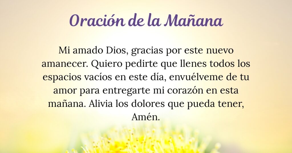 ¡Dios es amor! Y te ama como un Padre ama a un hijo. En esta bonita mañana que se levanta, únete en oración y pídele que te acompañe en el transcurso de este día, cuidándote y protegiéndote de todo peligro. Que esta oración pueda ser el mejor inicio de un nuevo día.