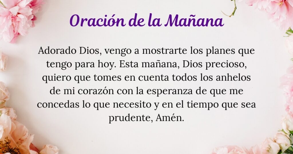 Padre Santo, gracias por concederme ver un nuevo día. Gracias por la luz de esta mañana. Quiero alabarte y bendecirte siempre porque me tienes muy presente en todos tus planes. Bendíceme esta mañana con tu amor.