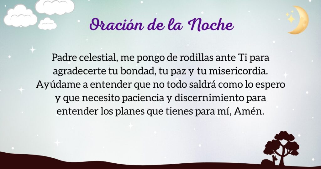 Padre de amor, gracias por este largo día que me concediste. Gracias por todas las lecciones que pude obtener de los momentos a tu lado. Gracias porque mi familia siempre está dispuesta a ayudarme y apoyarme en los momentos que los necesito. Gracias por tu amor en esta noche, mi Dios.