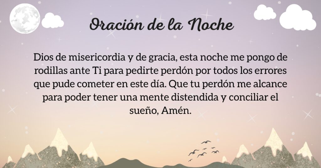 Llegó la noche y con ella el momento de descansar. Duerme confiando que dios está cuidando tu casa y tu familia. Pon todo en las manos de Dios a través de esta bonita oración y verás que la paz te acompañará en esta noche.